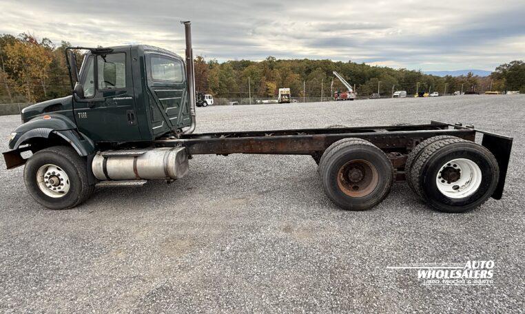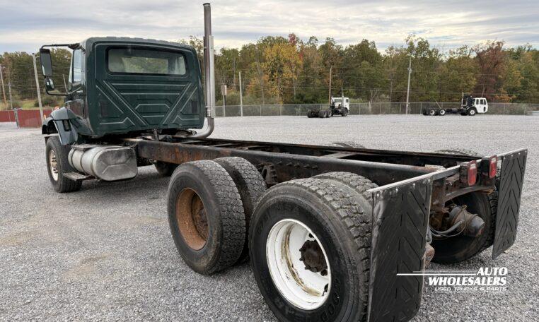 2004 IHC 7500 Cab & Chassis, HT530 – 300 H.P., Eaton Fuller 10 Speed, 11R22.5 Tires, Front Tires: 425/65/22.5, Budd Steel Wheels, 20,000 lb Front Axle, 46,000 lb Rears – Ratio: 5.38, Hendrickson Suspension, Cab to Axle: 158″, Useable Frame: 205″, Wheel Base: 224″